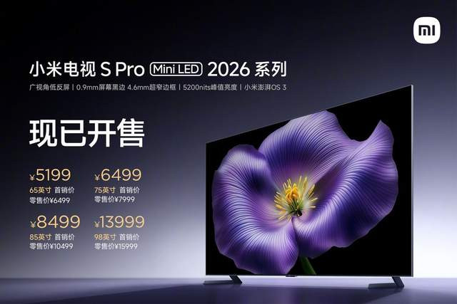 3,小米电视S Pro miniLED 2026系列,5199元起